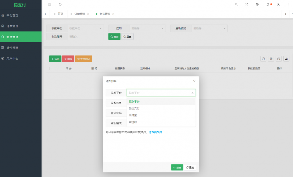 支付宝插件alipay默认安装,支持收钱码、经营码,2个通道,需挂机监听