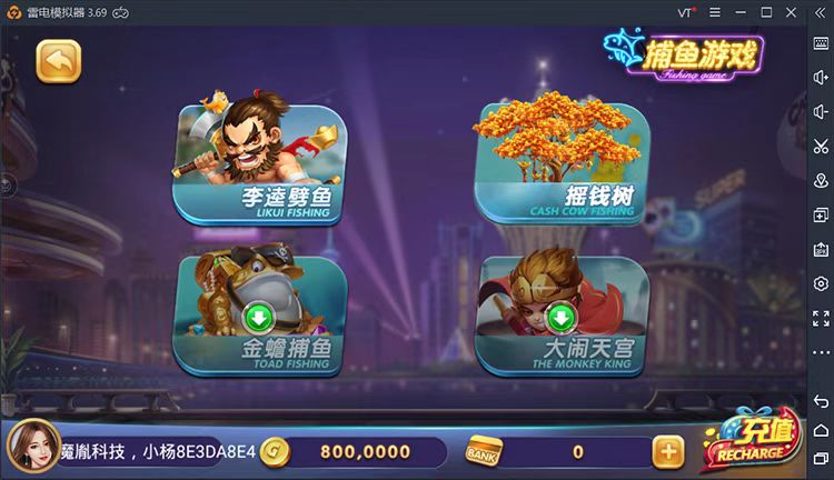 捕鱼包含:李逵劈鱼、摇钱树、金蟾捕鱼、大闹天宫