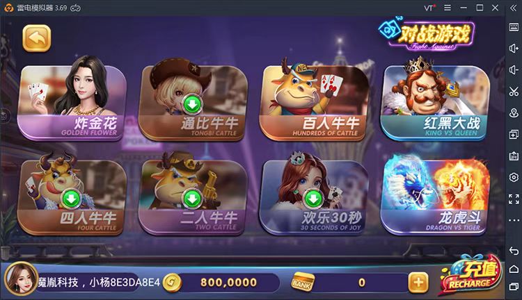 棋牌包含:炸金花、四人牛牛、二人牛牛、龙虎斗、经典斗地主、通比牛牛、百人牛牛