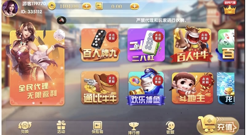 真金百万通棋牌源码完美搭建,带微信登录,游客登录,游戏UI感觉很不错,带全民推广