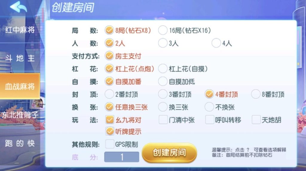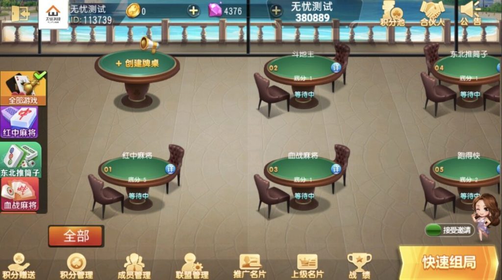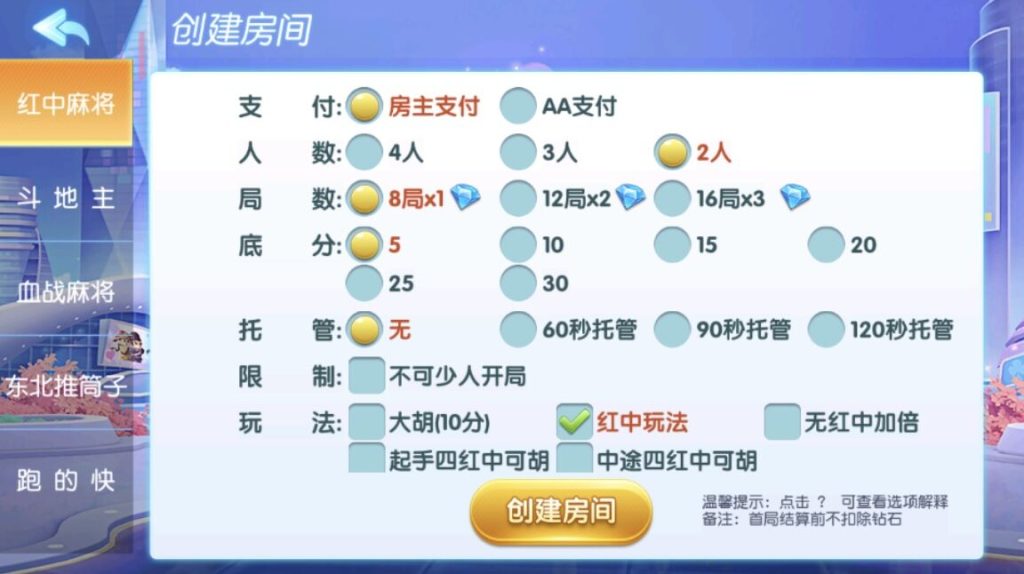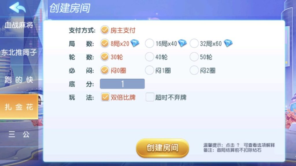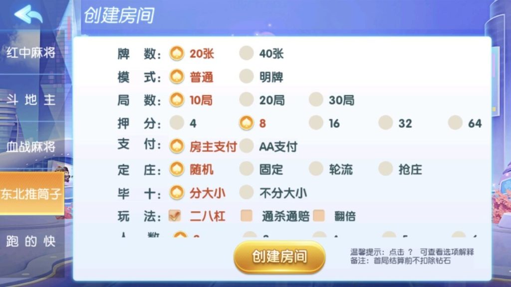 内含游戏:斗地主,跑得快,三公,牛牛,扎金花,红中麻将,血战麻将,东北推筒子