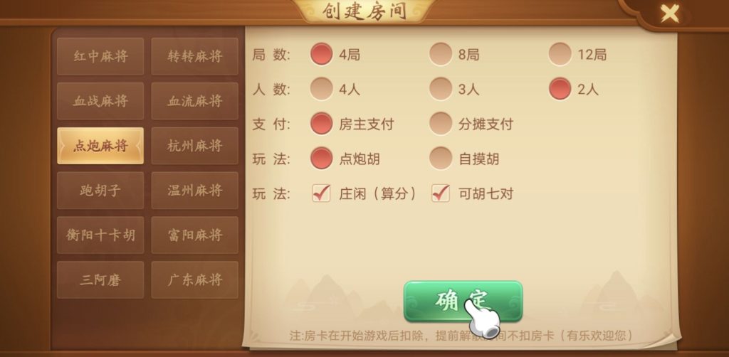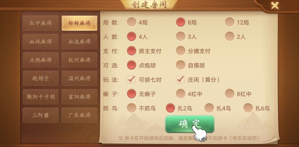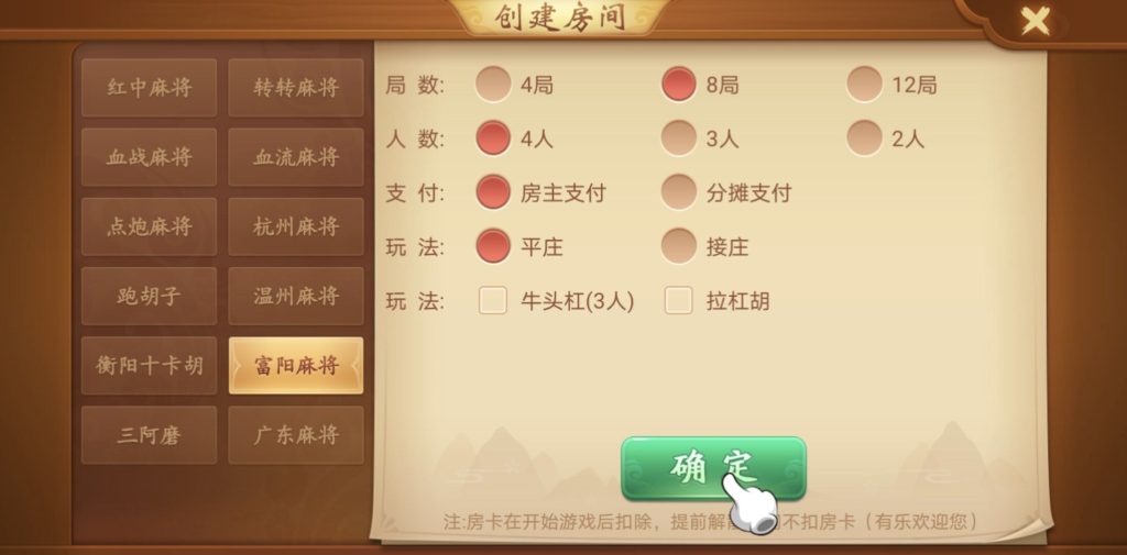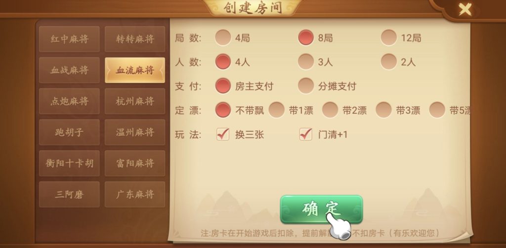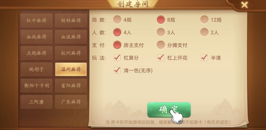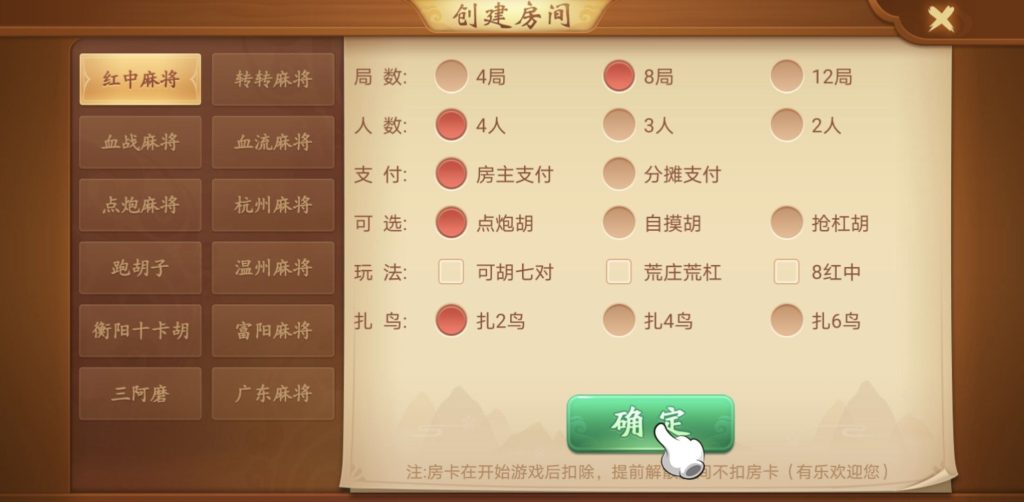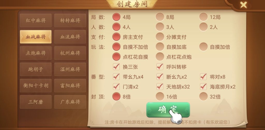 - 里面麻将游戏挺多的包含:红中麻将,转转麻将,血战麻将,血流麻将,点炮麻将,杭州麻将,平阳台炮,灵溪麻将,温州麻将,富阳麻将,三阿磨。义务麻将,三门麻将,柳州麻将,建德麻将,三丁两房
