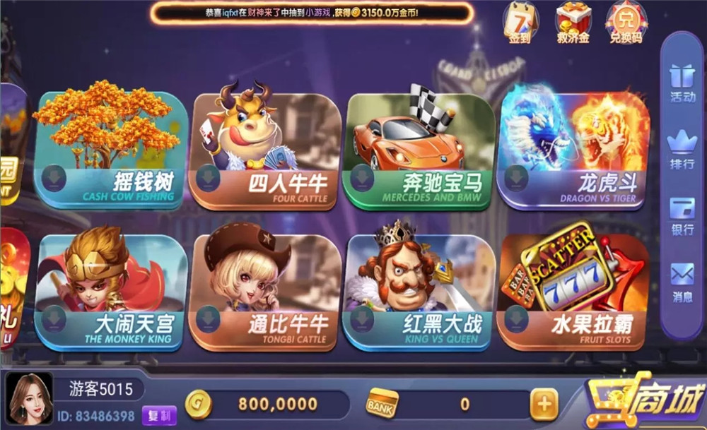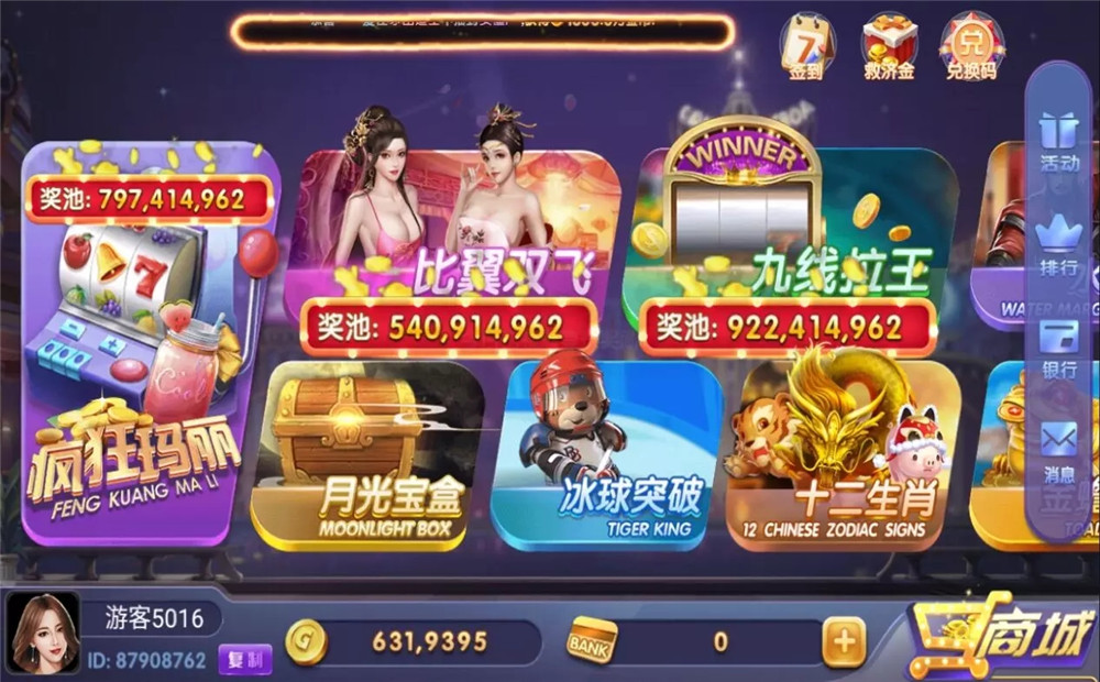 此平台的控制端为独立控制端,控制端功能简单粗暴方便,功能强大,另外有独立的银商系统,方便大家运营。 此电玩平台子游戏:比翼双飞,月光宝盒,九线拉王,冰球突破,十二生肖,水果玛丽,水浒传,金蟾捕鱼,财神来了,秘鲁传说,金瓶梅,埃及寻宝,飞禽走兽,茅山道士,森林舞会,寻宝乐园,财神献礼,摇钱树,大闹天宫,四人牛牛,通比牛牛,奔驰宝马,红黑大战,龙虎斗,水果拉霸