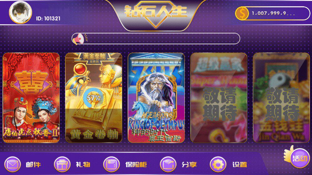 拉霸游戏分别有: 火焰小丑 、蓝球巨星、7宗罪、唐伯虎点秋香、奥王宙斯、黄金卷轴等游戏