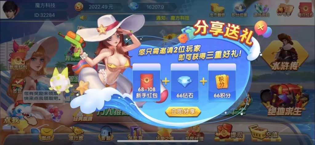 经典游戏:抢庄牛牛,通比牛牛,炸金花,三公,十三水,二人麻将,明牌抢庄,单挑牛牛,急速炸金花