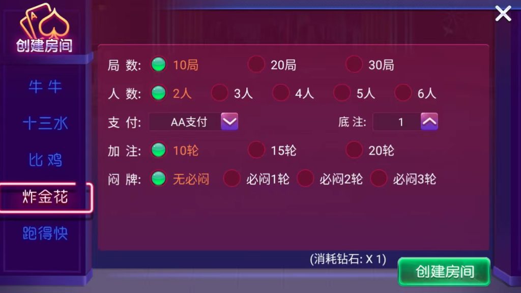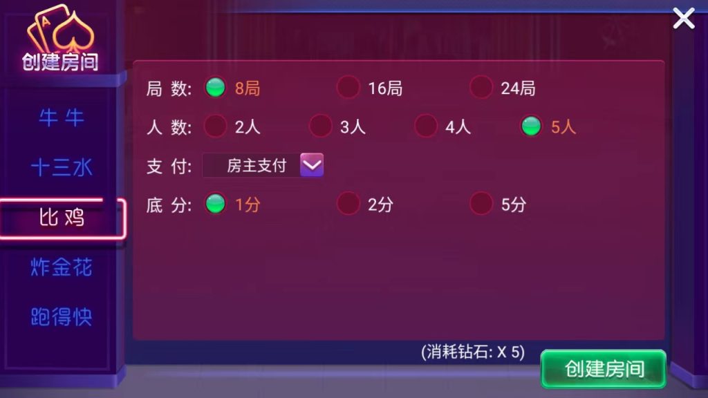 牛牛 十三水比鸡 炸金花 跑得快五个游戏