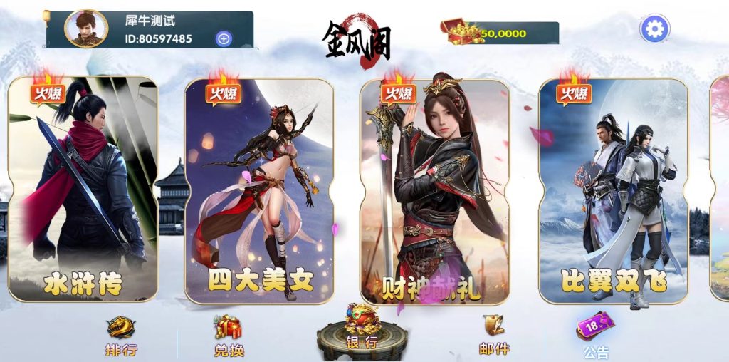 内含游戏:小水果玛丽、麻将胡了、功夫熊猫、跳高高、赏金船长、冰球突破、金瓶梅、三打白骨精、水浒传、四大美人、财神献礼、比翼双飞、月光宝盒、连环夺宝、大闹天宫、金蟾捕鱼、奔驰宝马、百人牛牛、森林舞会