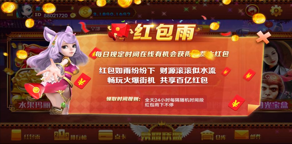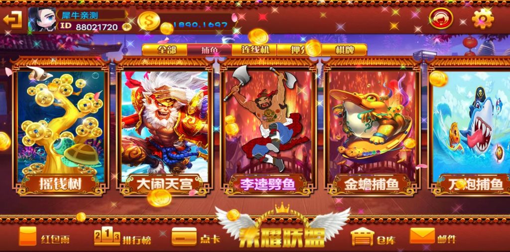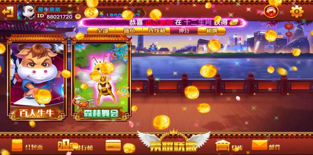 内含游戏:水果玛丽、疯狂的麻将、跳高高、加勒比海盗、月光宝盒、摇钱树、大闹天宫、李逵捕鱼、金蝉捕鱼、万炮捕鱼、冰球突破、九线拉王、十二生肖、财神来了、比翼双飞、抓鬼特工、水浒传、纸牌老虎机、埃及拉霸、秘鲁传说、百人牛牛、森林舞会