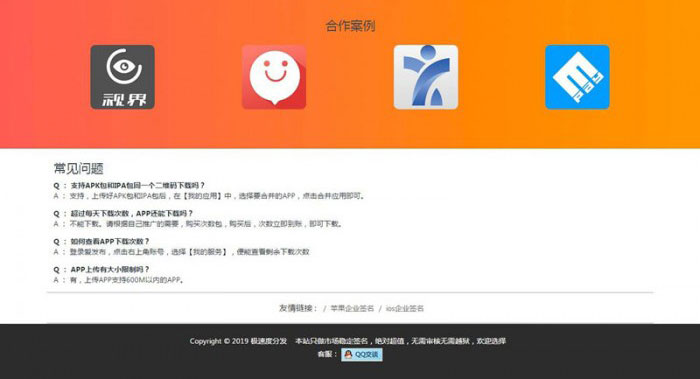 本程序支持IPA和APK分发,上传后自动判断,文件我们通过技术手段已经让IOS和安卓客户稳固安装!更新说明:1、修复 任意上传文件漏洞,免提库(被删数据库就是利用该漏洞)2、修复本地服务器储存和多种储存方式!3、支持云端服务器下载4、支持7牛阿里云存储绑定5、新增累计下载次数6、跳转信任修复