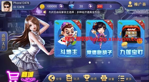 金币场: 斗地主 跑胡子 九莲宝灯 宝石风暴 金蝉捕鱼 红中MJ 六胡抢 十三张 碰胡子 跑得快 xue战MJ