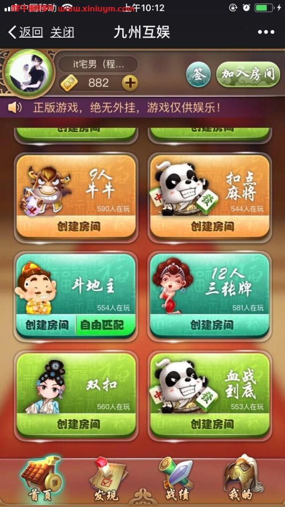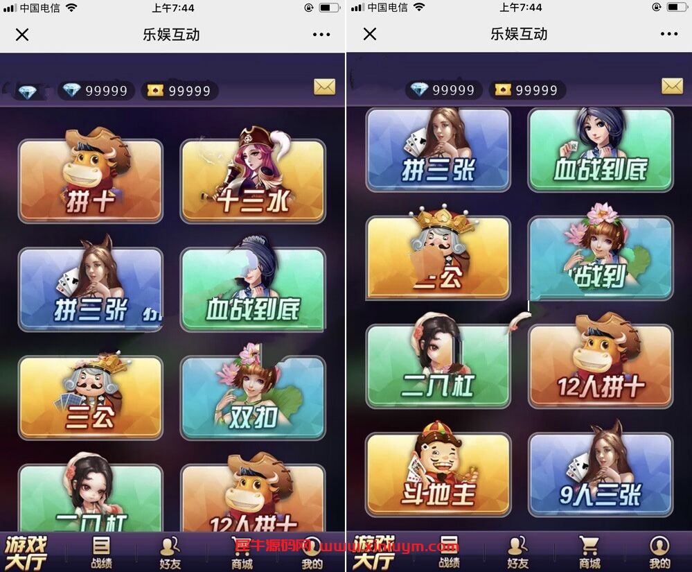 界面在原来的九州上有些改动,修复了某些BUG,源码里面的游戏包含牛牛、jin花、斗地主、十san水、扣点MJ、xue战MJ和双扣,除了三公外,其他均都正常运行,带透S控制和胜率控制,支持签到功能,源码用户体验极佳,运营版。