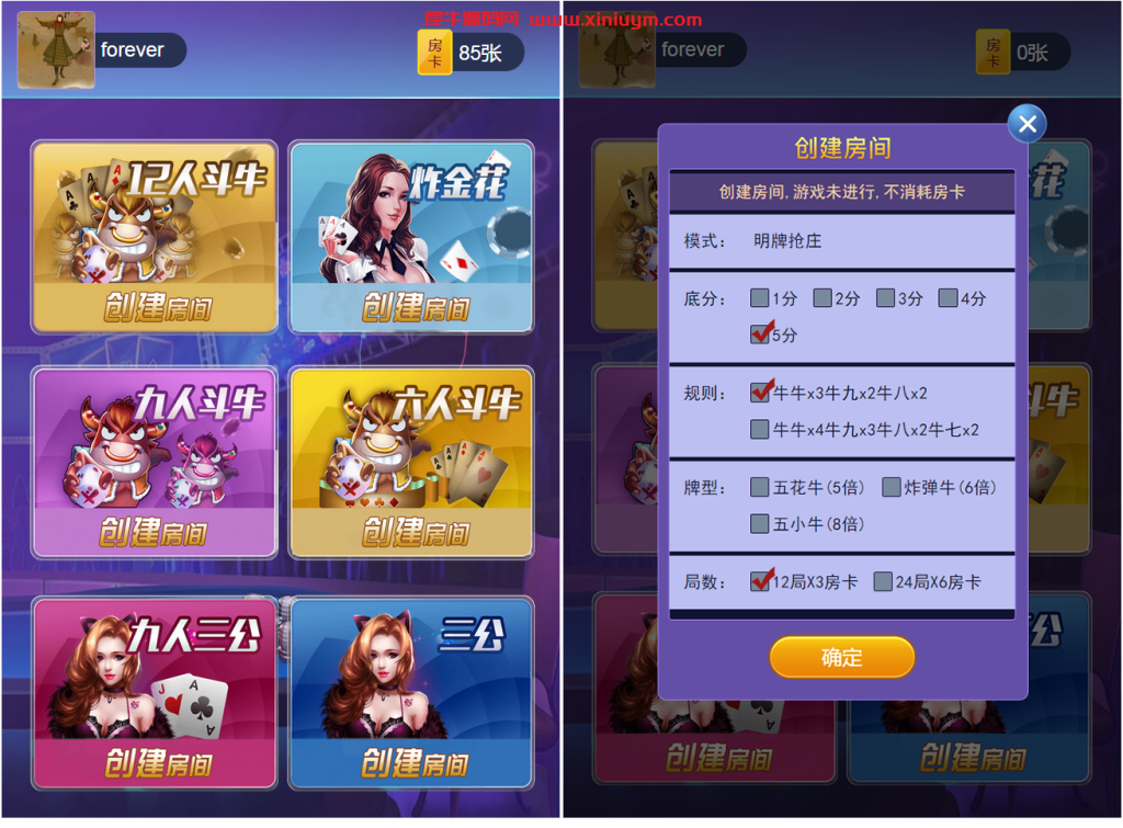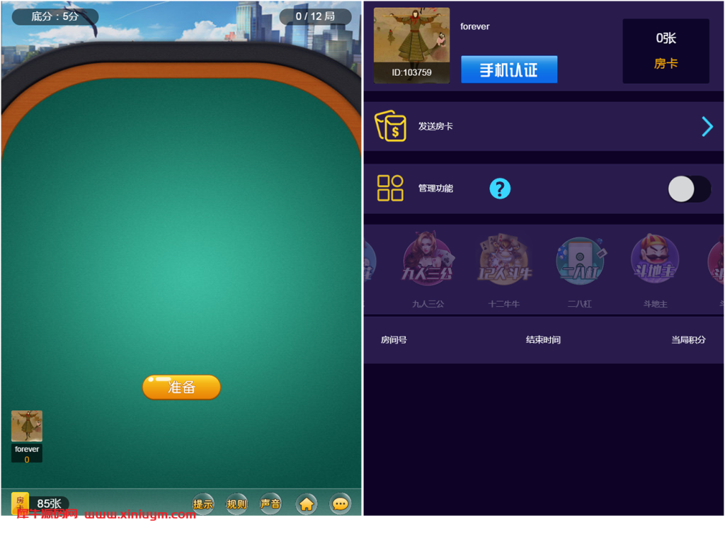H5高仿大番薯微信12人牛牛房卡版,这是12人牛牛玩法,底分1-5,附带管理系统,运营版本级别源码、不卡顿、带控制、修复版,增加管理和邀请功能,内含:搭建视频教程。