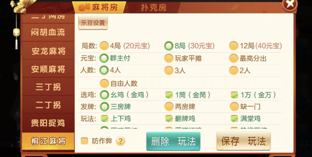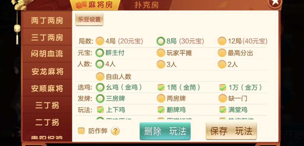 麻将:三丁两房,两丁两房,闷胡血流,安龙麻将,安顺麻将,三丁拐,两丁拐,贵阳捉鸡,榕江麻将
