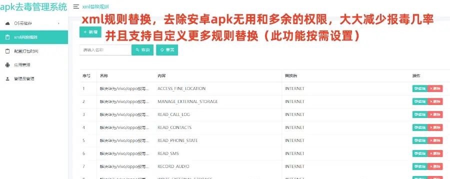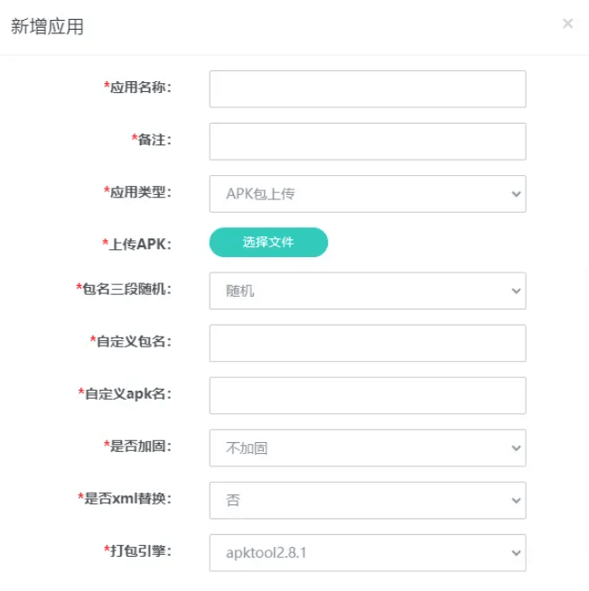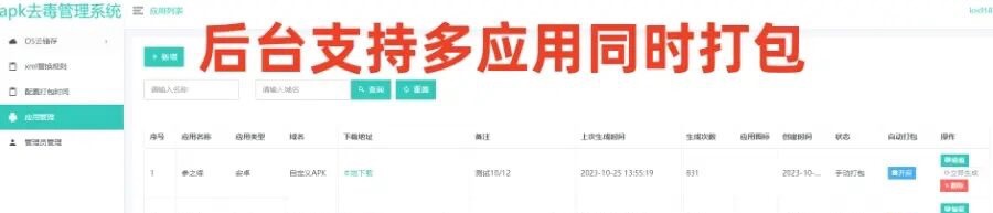 系统通过对apk反编译,随机包名,随机签名,混淆代码等方式,回编译生成新的apk安装包