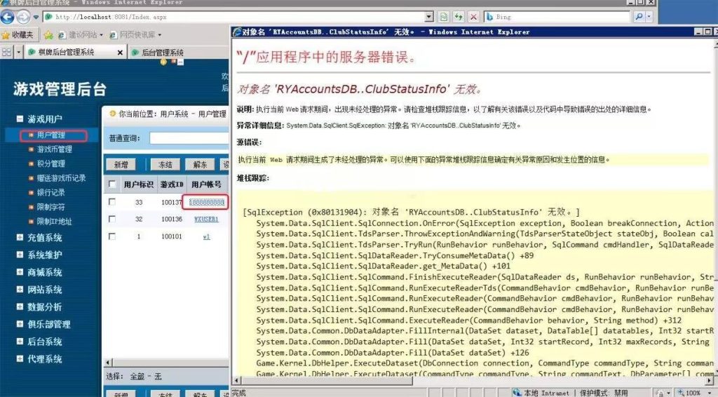 对象名 ‘RYAccountsDB..ClubStatusInfo’ 无效。