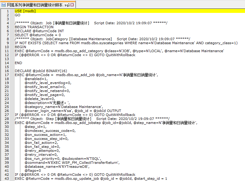 EXEC @ReturnCode = msdb.dbo.sp_add_jobstep @job_id=@jobId, @step_name=N'净销量和日销量统计',