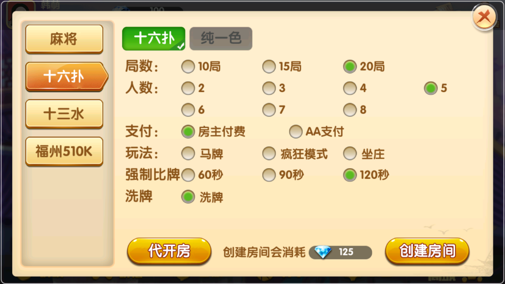 全套程序组件:服务端,APP安卓、苹果客户端,网站,数据库。游戏:福州麻将、十六扑、十三水、福州510K