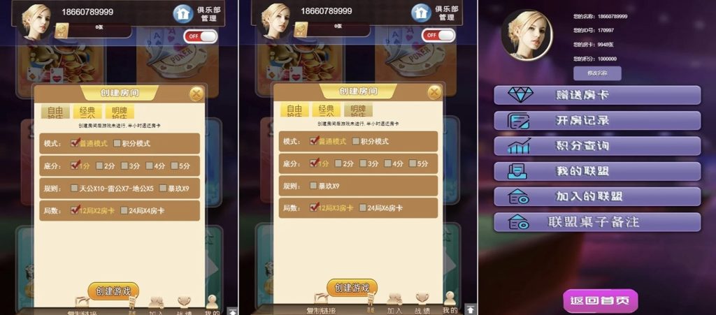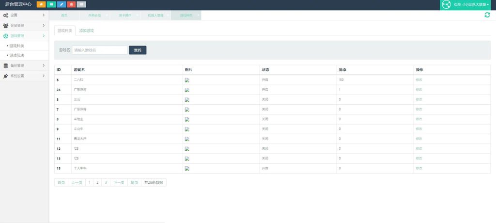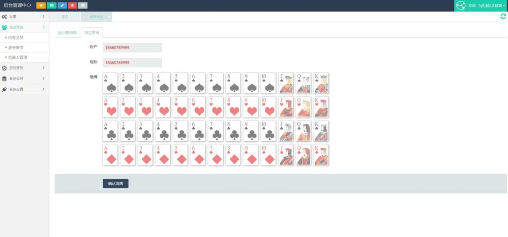 小苏大联盟是运营级别棋牌游戏平台,正版无授权,平台带有俱乐部,房卡与积分玩法,功能方面特别强大,支持开房记录、战绩、代理,游戏控制玩家输赢可以支持胜率、以及透视控制,准确的号牌率、指定发牌。