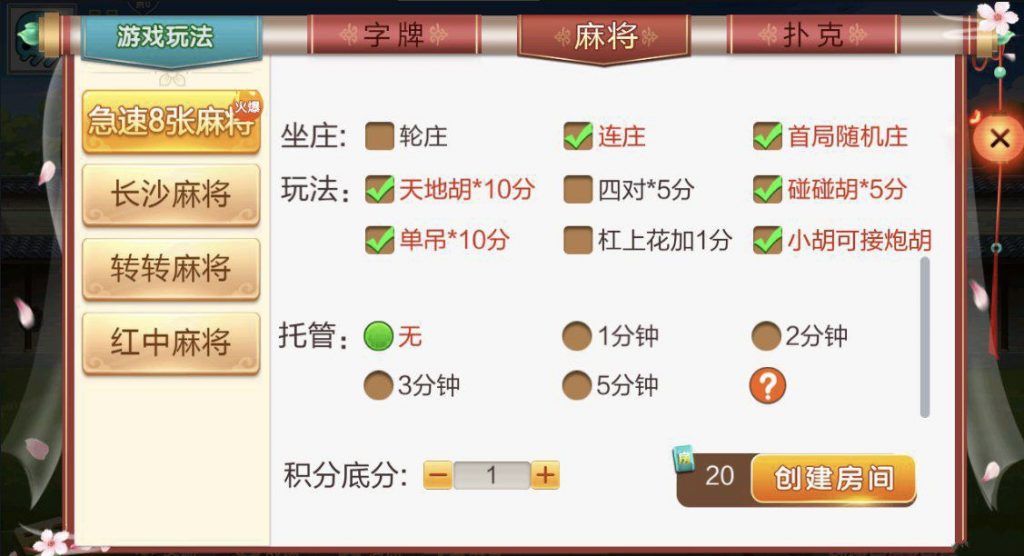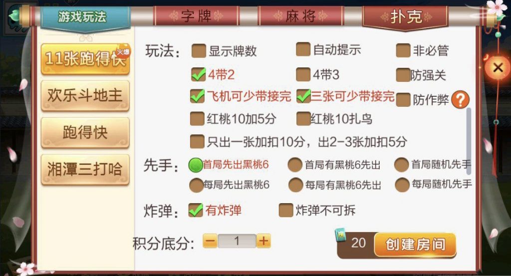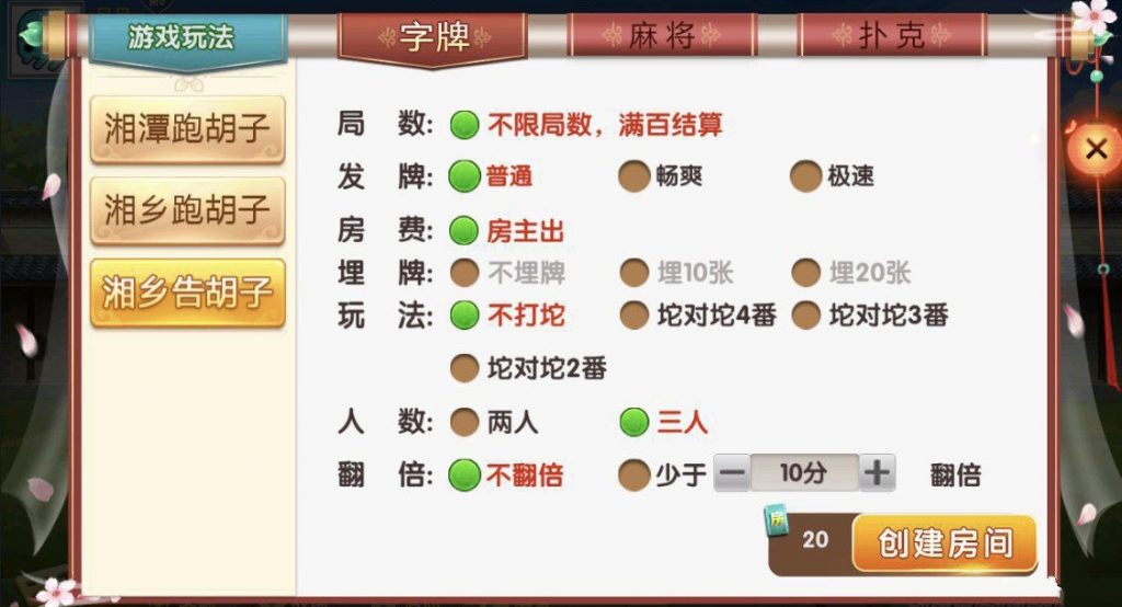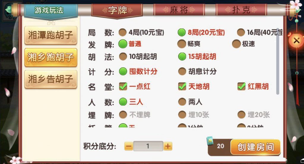麻将:急速8张麻将,长沙麻将,转转麻将,红中麻将 扑克:11张跑得快,跑得快,斗地主,湘潭三打哈 字牌:湘潭跑胡子,湘乡告胡子,湘乡跑胡子