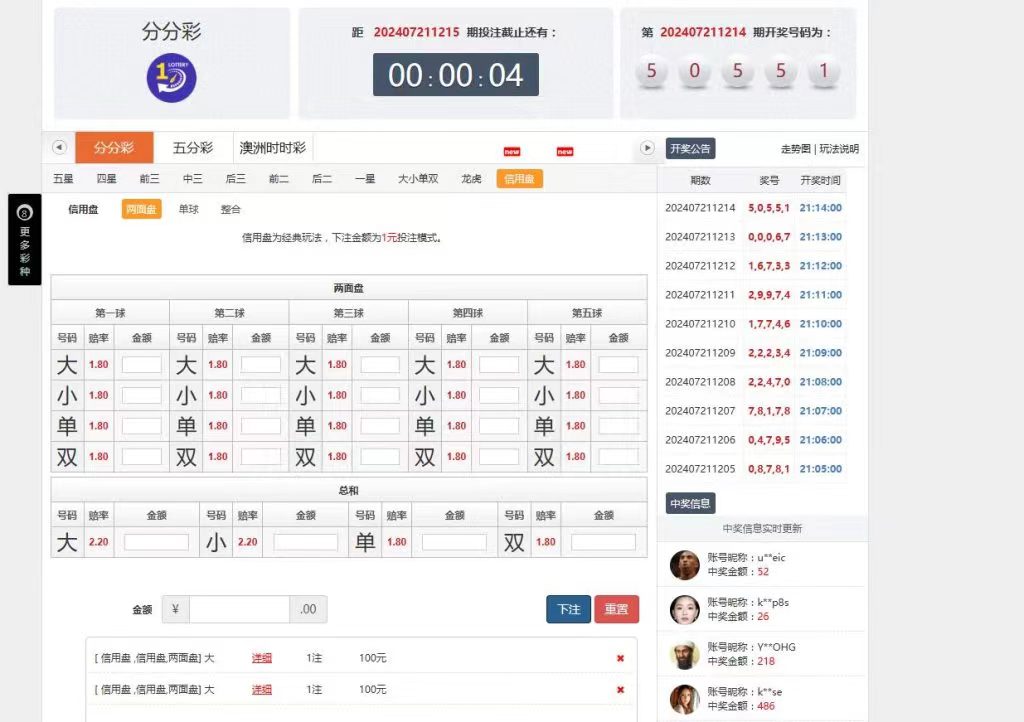 大富彩票基本上都是系统彩,开奖、下注、结算都是没有问题的