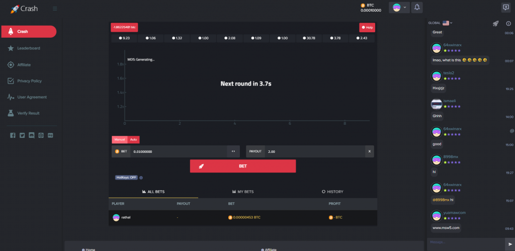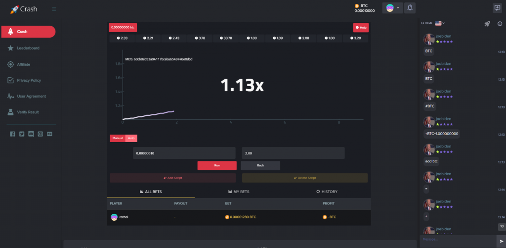游戏支持BTC充值,附带聊天室、支持后台添加机器人