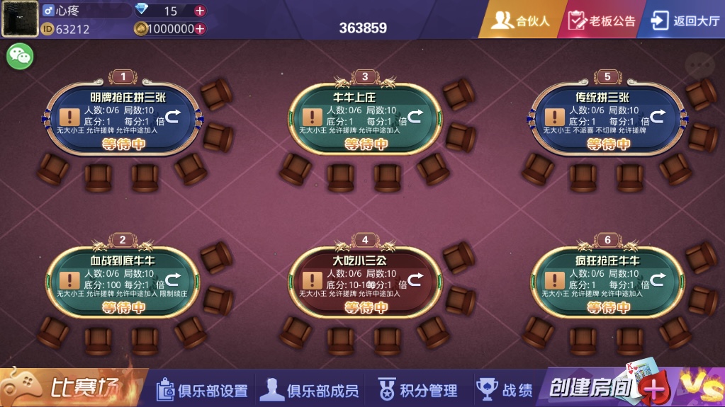 界面看着不错,牛牛+三公+金花三种玩法,带有双端APP,带有俱乐部茶楼模式