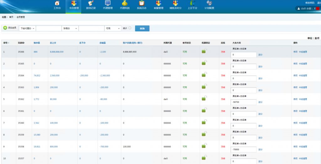 代理平台用户名:daili 登录密码:aa147852 上分密码:qq111222