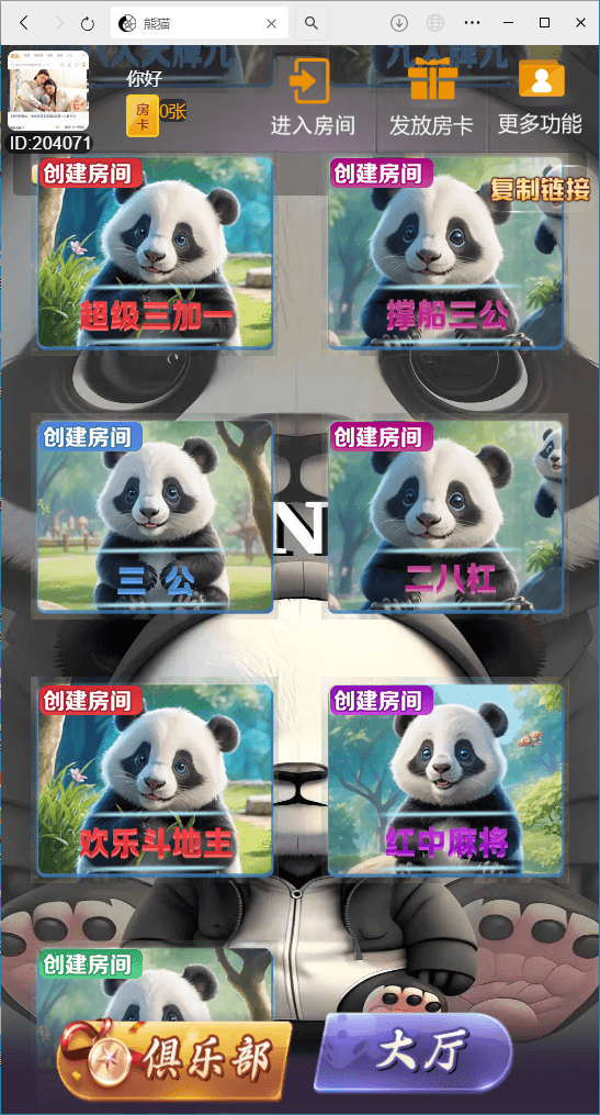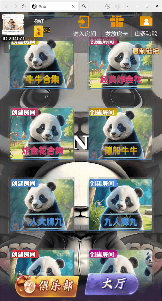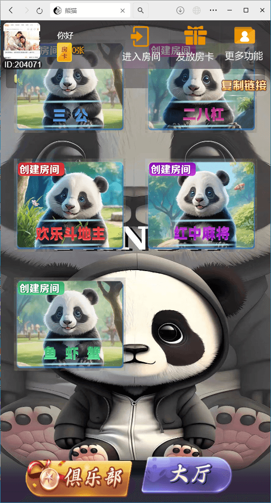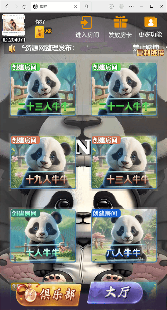 熊猫大厅,站长掏腰包购入了4套新版H5大厅,,亲测可搭建完美运营、支持迁移微信云托管,免域名,无视微信拦截。控制杀正常,玩法正常,可完美运营。支持微信登录,正常账号注册登录。