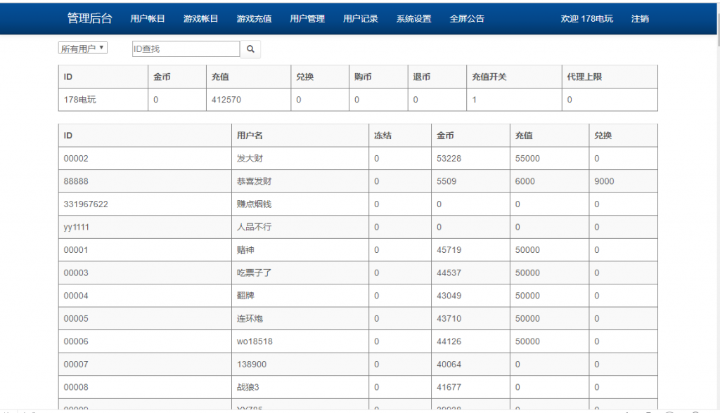 运营街机捕鱼游戏娱乐方面首选,后台功能完美控制端强大,UI设计简洁,178电玩城分三种类型游戏,其中有电玩、捕鱼、纸牌,游戏不多,但全是热门游戏。