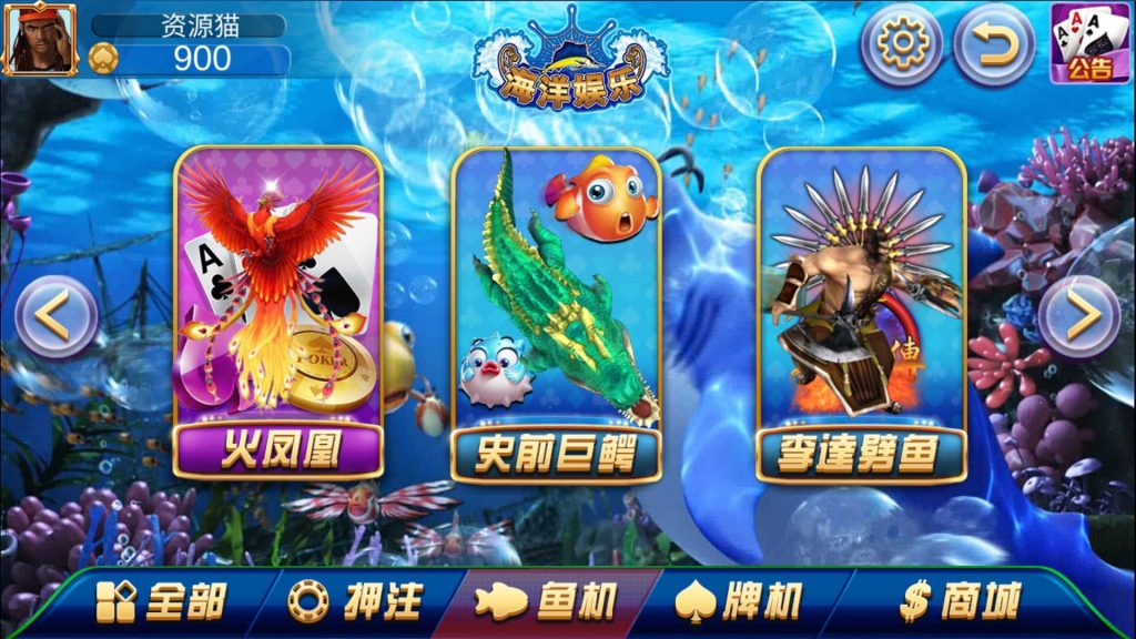 捕鱼:史前巨鳄、李逵劈鱼、金蝉捕鱼、摇钱树;