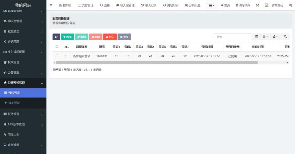 前端是编译后,后端php,前后分离的项目。共有6个彩种,其中4个为官网,2个为私彩,私彩可以预设